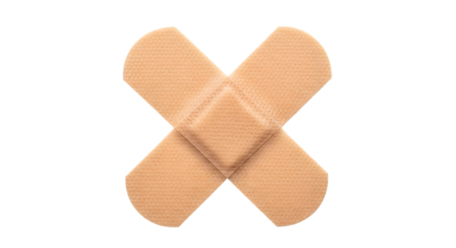 Two beige band aids crossed over each other isolated on transparent background