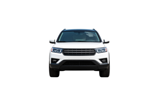 Front view of a white modern suv with a black roof isolated on transparent background
