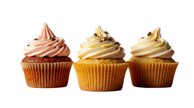 Transparent background of pink cream scoop in striped bowl hanging on rope
