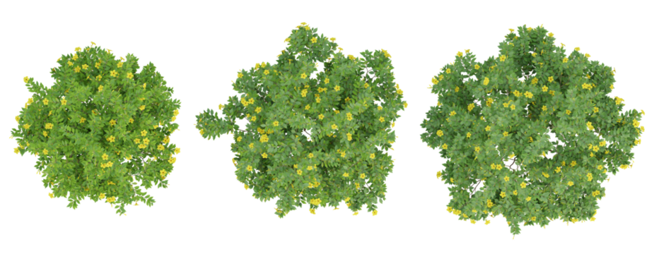 Top view set of 3d flower plants allamanda cathartica on transparent background, png illustration