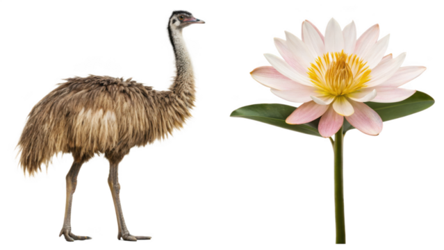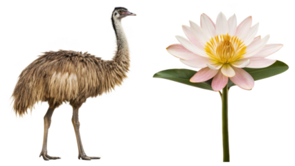 Emu animal and Allamanda Cathartica flower