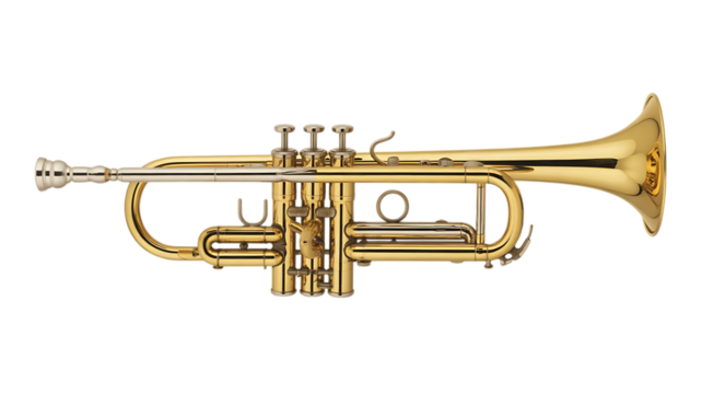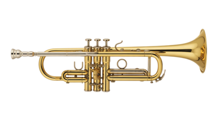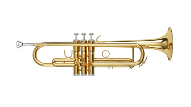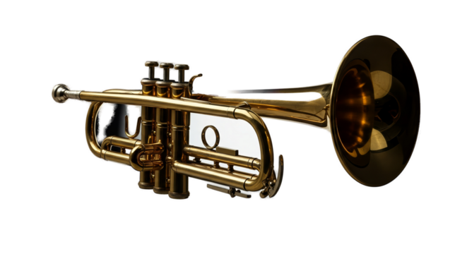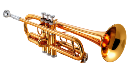 High-resolution golden trumpet musical instrument brass wind orchestra band music player isolated on transparent background