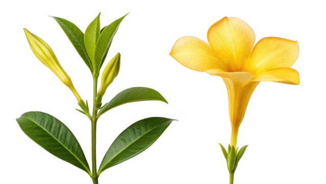 Allamanda Cathartica Flower and Golden Trumpet Flower on transparent background