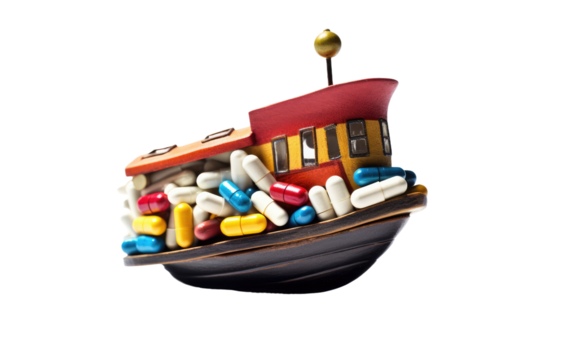 Medical toolkit and prescription medication in a three dimensional render against a isolated