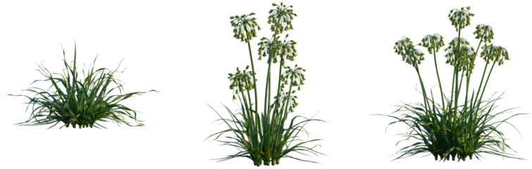 Allium siculum tree, cutout, front view, isolate, transparent, Allium plants with green foliage and flower buds for garden designs