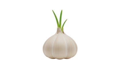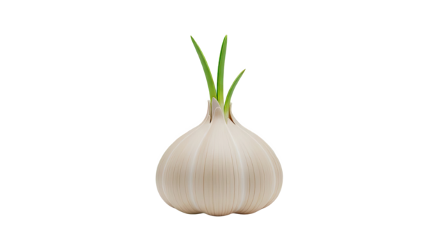 Single Sprouted Garlic Bulb with Green Shoots