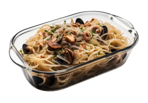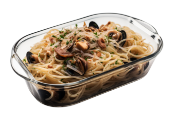 Linguine allo scoglio on transparent background. Generative AI.