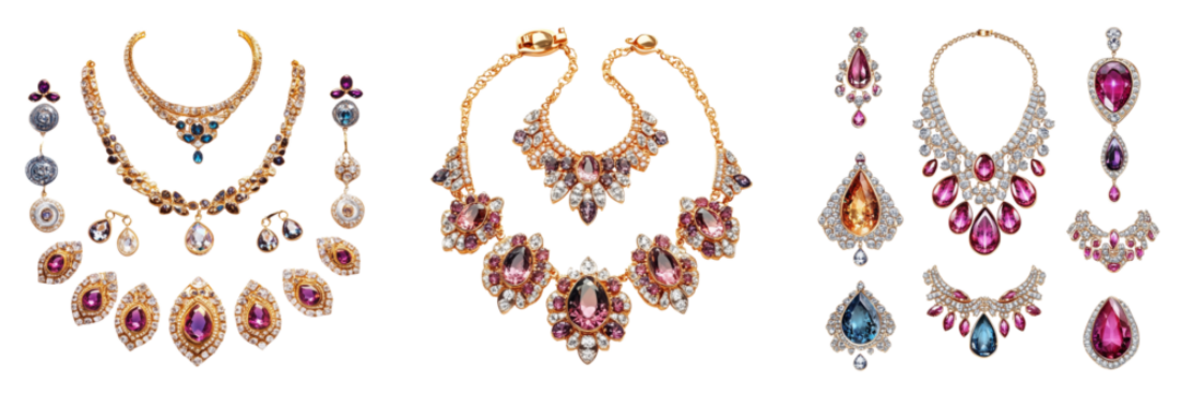 Set of Close-up of a Silver Alloy Jewelry Set – A high-resolution image showcasing an elegant silver alloy necklace on transparent png background. Ai generated