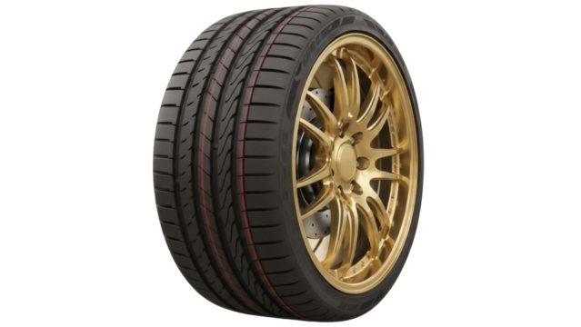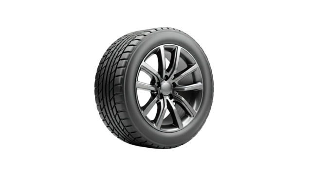 Vector illustration of two modern car tires with alloy wheels and tread detail