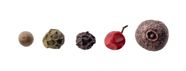 set of peppercorn allspice pepper in brown wooden bowl, cut out