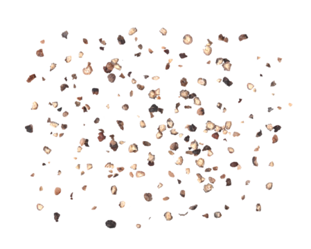 PNG. Dry allspice grains are randomly scattered across the surface, top view.