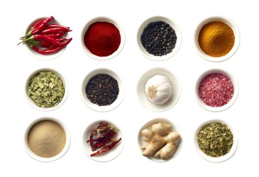 A Vibrant Collection of Fresh and Dried Culinary Spices and Herbs isolated on a transparent background