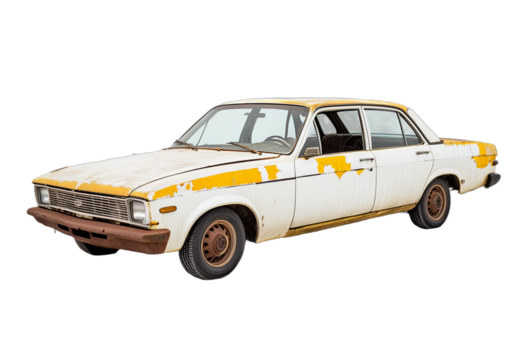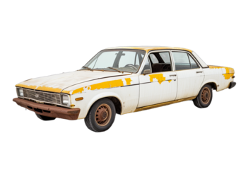 Vintage Rusty Yellow and White Sedan on Transparent Background