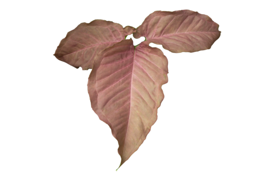 Pink leaf of Syngonium Podophyllum Pink Allusion isolated on white background included clipping path.