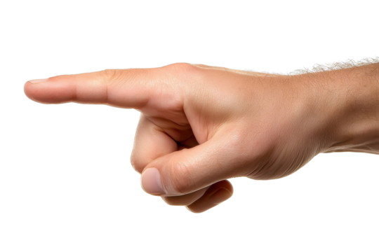 Closeup of a hand with a pointed finger isolated on a transparent background. gesture, direction, or indication concept.