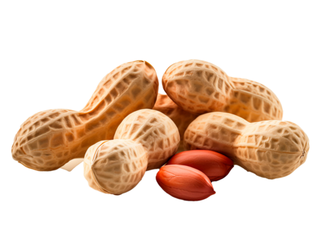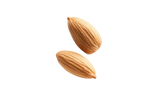 Four almonds are shown in a row, with the top one being the largest, isolated