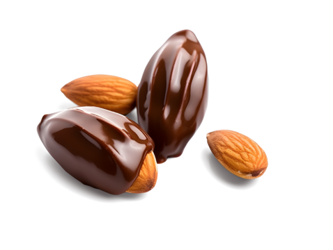 Almonds nuts in chocolate, isolated on white and transparent background, png