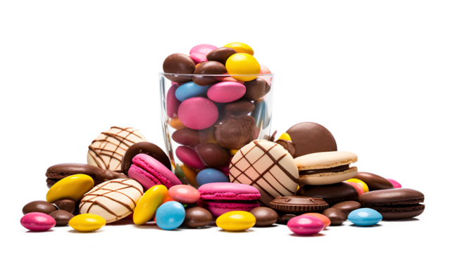 Biscuits and colorful chocolate beans isolated on a transparent background, Generative AI