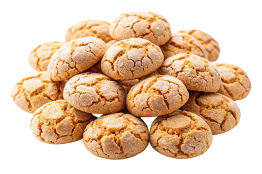 Rustic amaretti cookie with powdered sugar on the transparent background, traditional italian almond biscuit dessert, homemade sweet pastry treat