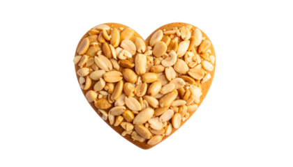 Delicious heart valentine's cookie covered with peanuts and almonds, perfect for shaped day or any special occasion isolated on solid white background in Png format