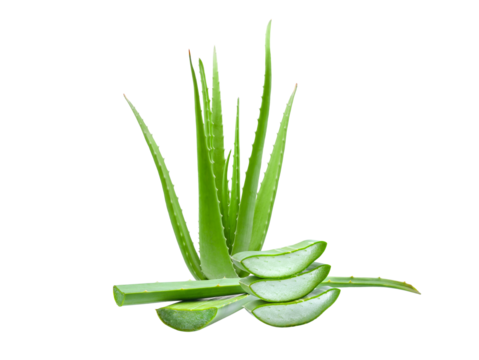 sliced leaves of fresh aloe vera with water droplets on PNG