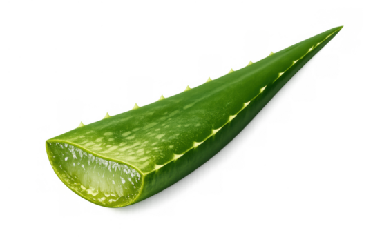 Fresh green aloe vera leaf natural herbal plant medicine skincare ingredient isolated on white background