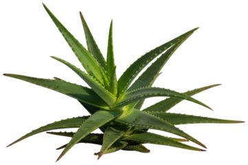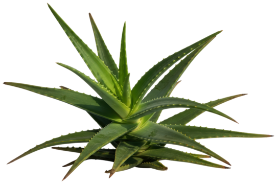 A vibrant aloe vera plant with succulent leaves isolated on a transparent background. background removed