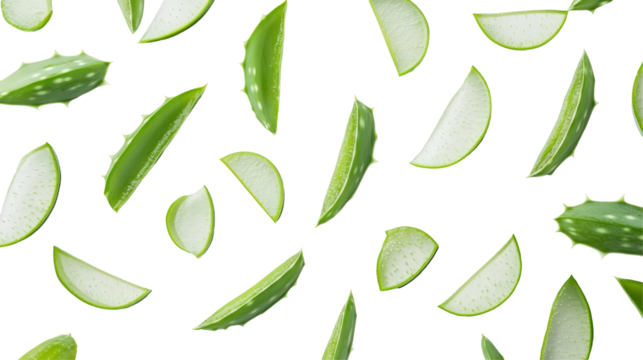 Aloe Vera Slices Pattern Isolated On Transparent Background. Natural Ingredient For Cosmetics And Skin Care.