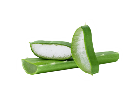 Fresh aloe vera slice isolated on transparent background for skincare product