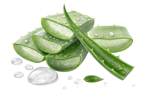 vector illustration, fresh cut aloe vera, isolated on white background.