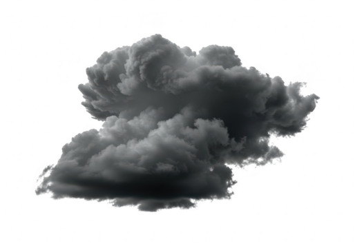 A dark, heavy storm cloud isolated on a transparent background, suggesting bad weather