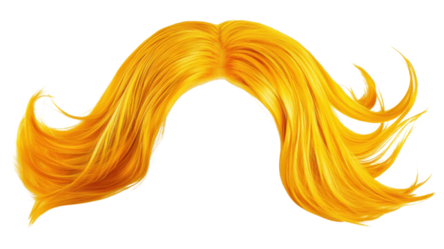 Long, wavy blond hair with highlights is flowing freely, giving a sense of movement and dynamism, isolated on a transparent background, perfect for beauty and hair care projects