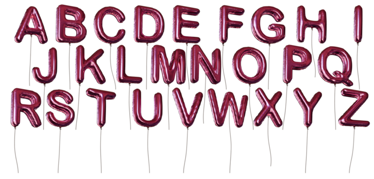 Pink letter png stickers, A to Z foil balloon alphabet set, transparent background