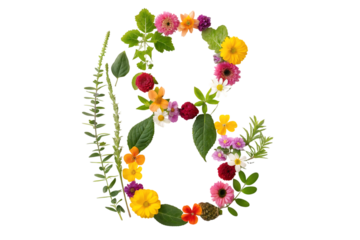 Number 8 made of real natural flowers and leaves unique flower craft idea