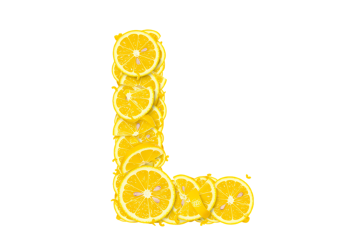Lemon Letter L Fresh Citrus Alphabet Image isolated on transparent background