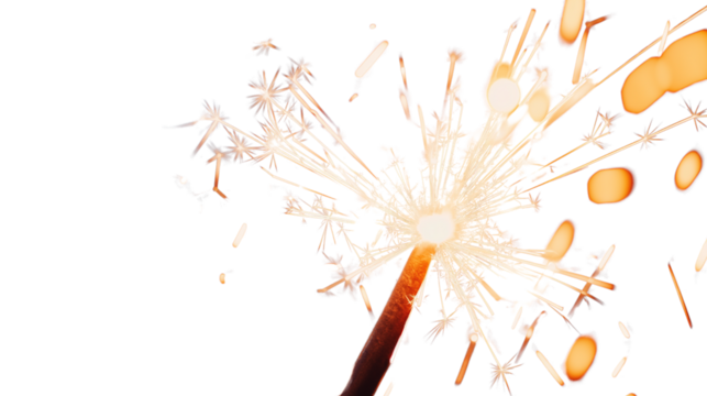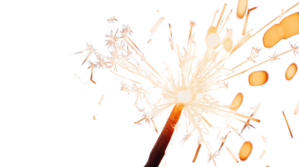 Close-up of sparkler fireworks with reflection light, isolated on clean white background, cinematic details, PNG