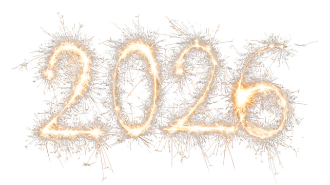 Golden Numbers 2026 Illuminated by Sparklers on Black Background new year isolated on a transparent background