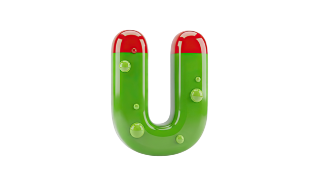3D Render of Letter U with Water Droplets and Red Cap