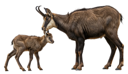 A loving wild chamois (Rupicapra rupicapra) mother with her baby chamois