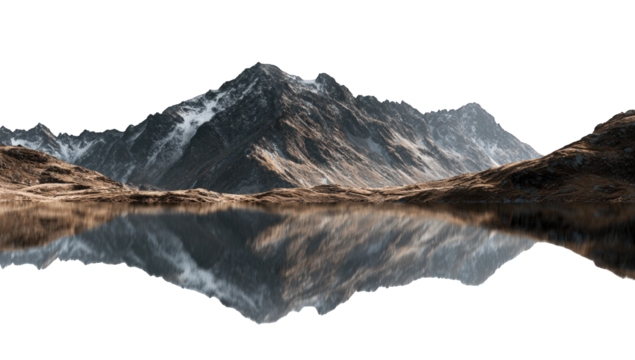 Serene mountain landscape with snow peaks and tranquil lake