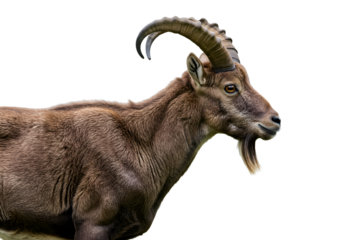Majestic ibex ram with large curved horns isolated on transparent background