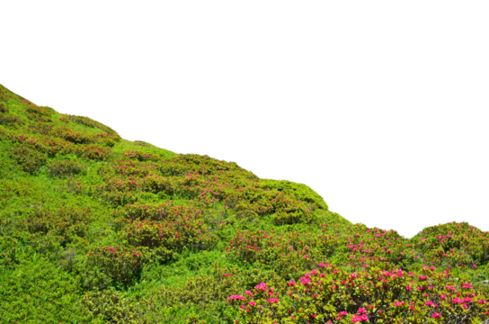 Mountain flower Alpine Rose (Rhododendron ferrugineum) isolated on transparent background, PNG.