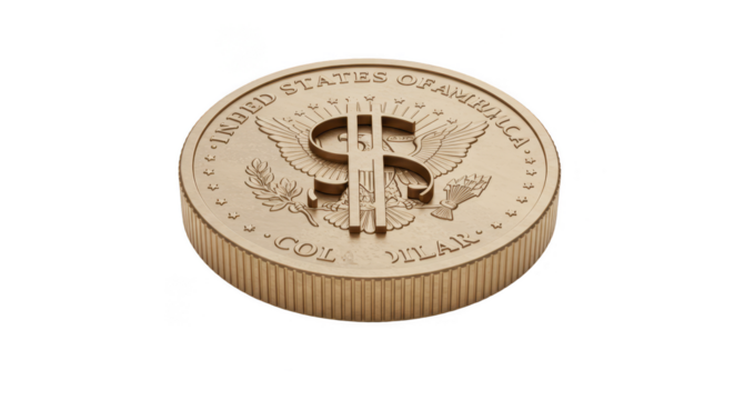 3D Rendered Gold Dollar Coin Isolated Digital Currency Wealth