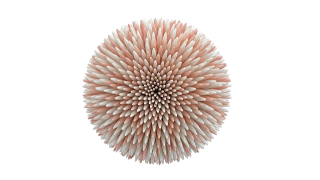 3D rendering of a spiky, spherical object with alternating peach and cream colors