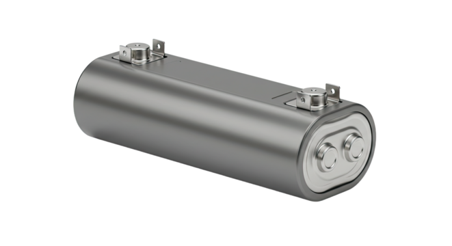 Shiny, yellow AA battery, upright, black background, with metallic top
