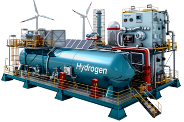 Hydrogen fuel and wind power plant for alternative energy production isolated on a white background