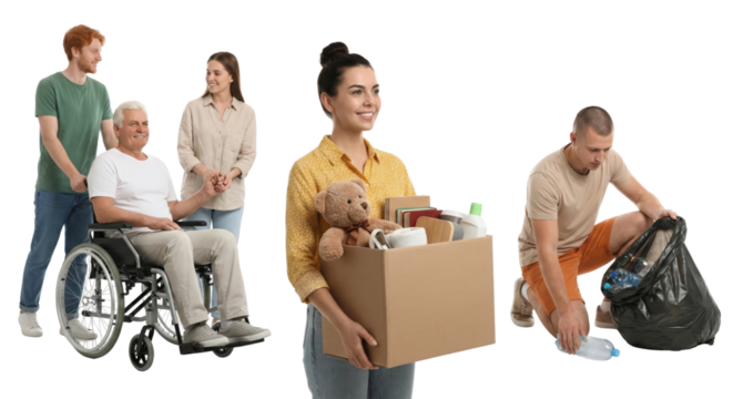 Supportive Caregiving Scene with Diverse Individuals Engaged in Community Assistance Activities