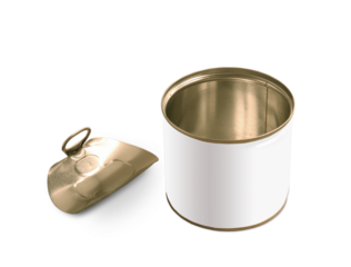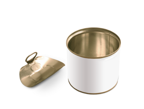 Geöffnete Konservendose ohne Etikett mit Textfreiraum, transparent ohne Hintergrund