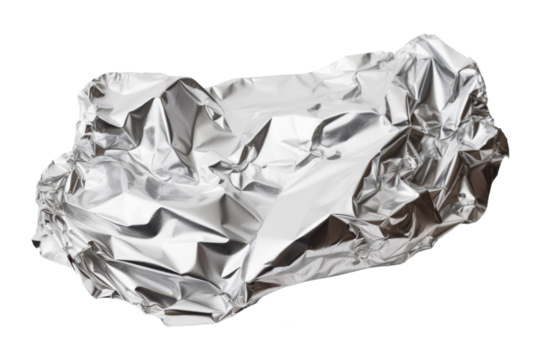 crumpled aluminum foil sheet isolated on white or transparent background png for food package of lunch closeup cut out
