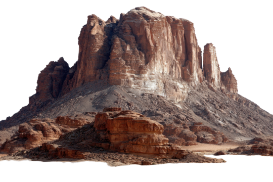 Majestic sandstone mountain range in desert landscape, isolated on a transparent background